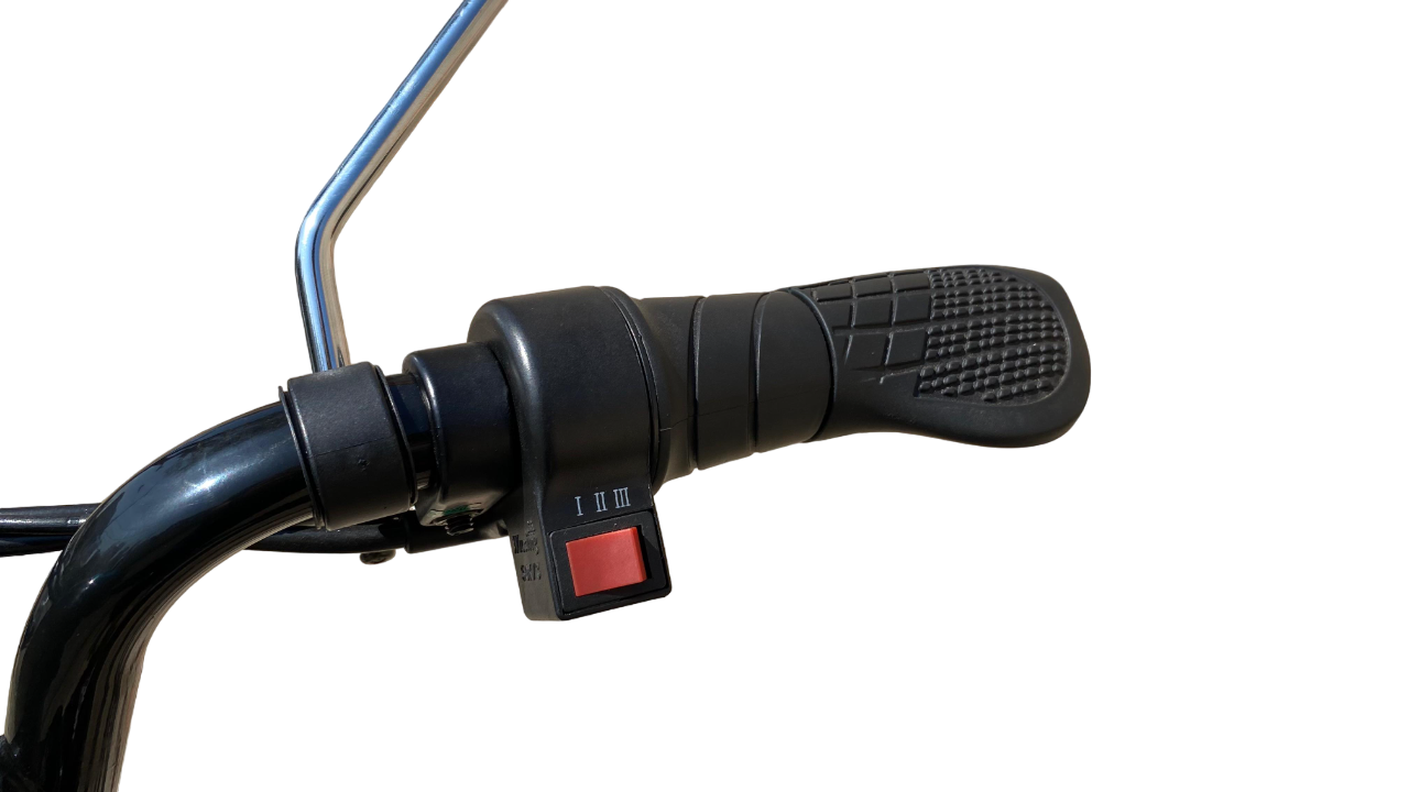 – Manoplas: Ergonômicas com acelerador e chave.